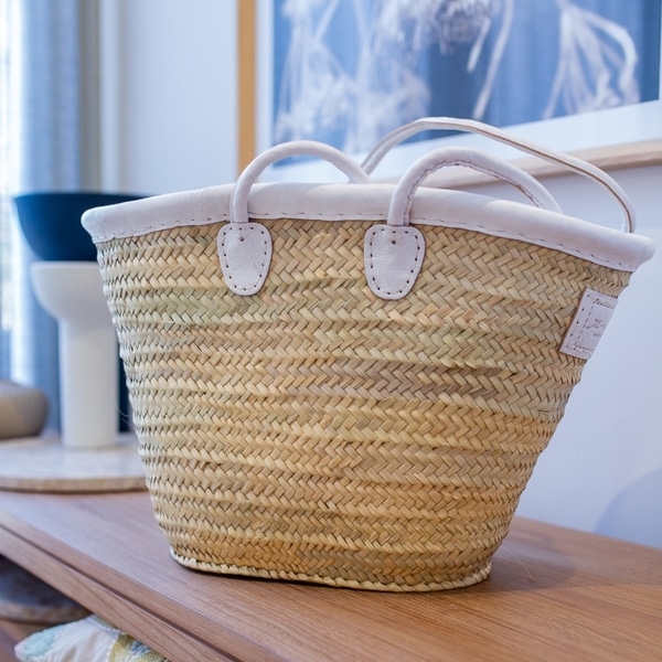 Like a straw basket or a wicker basket but made from palm leaves, so sustainable and very strong and can be filled to capacity when visiting the farmer’s markets.